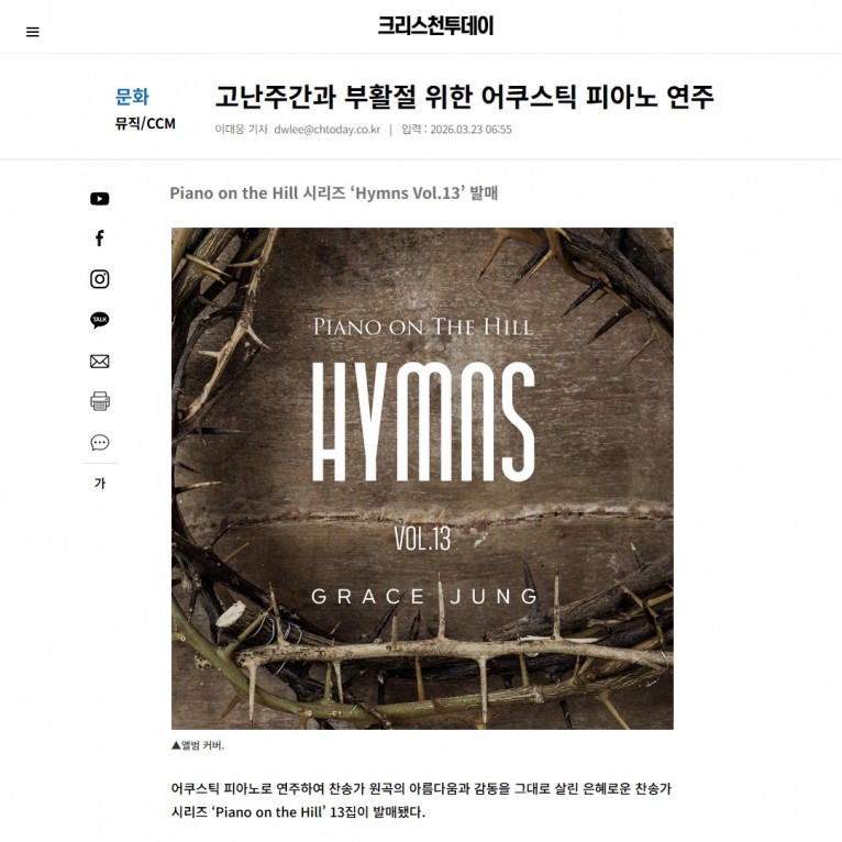 [기사] 고난주간과 부활절 위한 어쿠스틱 피아노 연주(크리스천투데이)