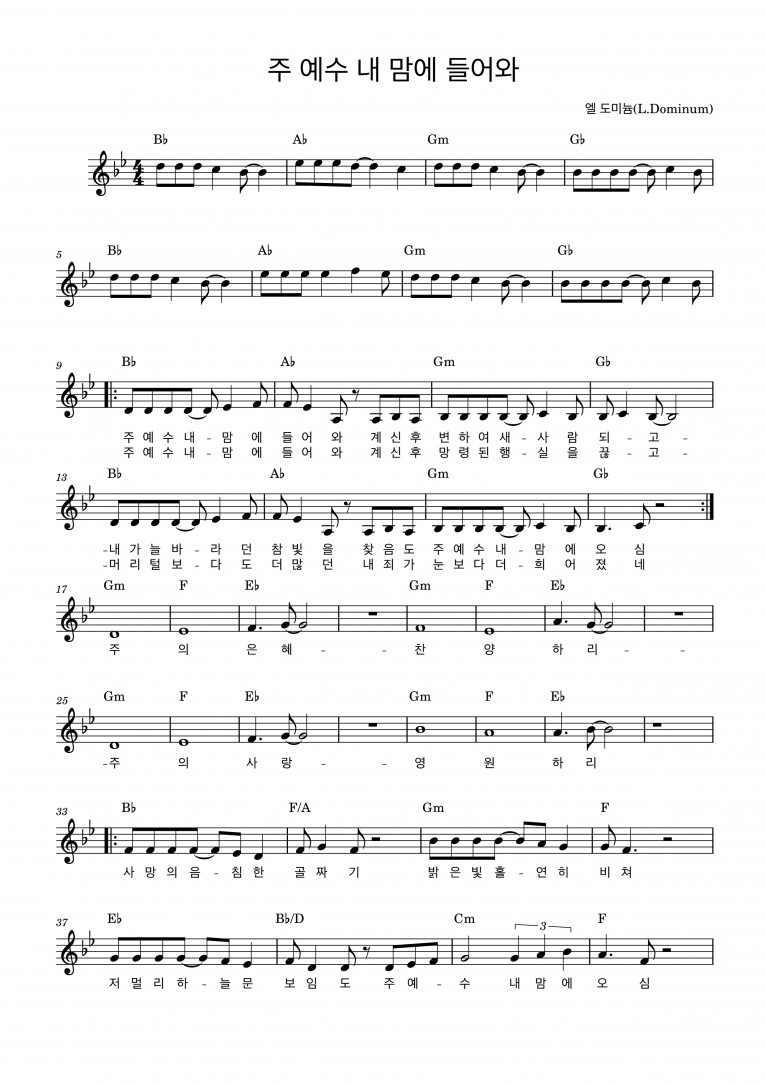 [악보] 주 예수 내 맘에 들어와 - L. Dominum (LoudateDominum 라우데테 도미늄: 하나님을 찬양하라)